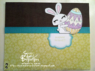 So lets get started...I was sent a cute bunny image that I could use for this blog hop. Heres the card that I made.